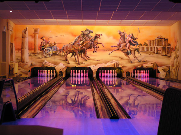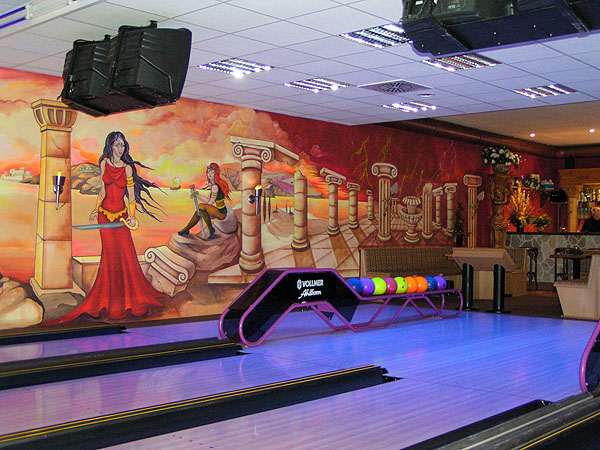 Wie der Name sagt, kann man in der Bowlingbahn Olbernhau die Straße nach Rom entdecken. Anschließend an die Räumlichkeiten der Philipp's Pizzeria in Olbernhau laden die großzügigen Räume der Bowlingbahn mit vier Bahnen und kunstvollen Wandmalereien alle Gäste und Besucher recht herzlich ein. Der Name „Via Roma“ der Bowlingbahn spiegelt sich in den Dekorationen und Gestaltungen der gesamten Anlage wider. Zu sehen gibt es das römische Reich aus vorchristlicher Zeit und so opulent das Leben der Patrizier jener Zeit war, so opulent ist die Ausstattung der Anlage in allen Belangen.